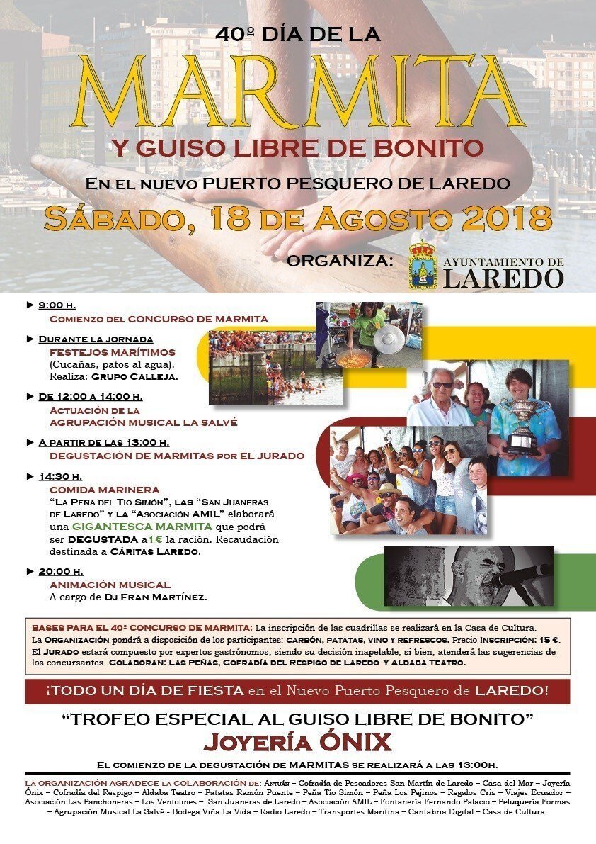 Laredo celebra este sábado, 18 de agosto, su 40 edición del Día de la Marmita y Guiso Libre de Bonito, una cita que se celebrará en el puerto pesquero y que organiza el Ayuntamiento.
