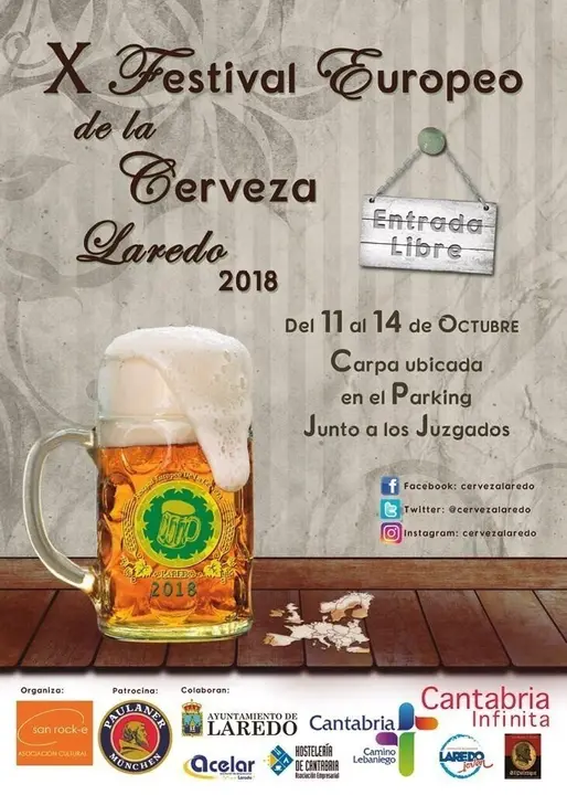 Laredo celebrará del 11 al 14 de octubre su décima edición del Festival Europeo de la Cerveza, que se desarrollará en una carpa en el aparcamiento situado detrás de la sede los juzgados de la villa y que, este año, como novedad, amplía su tamaño para dar cabida a un mayor público.