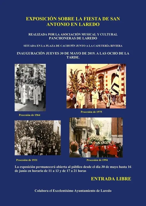 La Asociación Cultural y Musical Panchoneras de Laredo ha organizado, con la colaboración del Ayuntamiento, una exposición sobre la historia de la Fiesta de San Antonio de Padua en Laredo, una de las tradiciones festivas de la villa que hace unos años se ha recuperado de la mano de Panchoneras de Laredo.