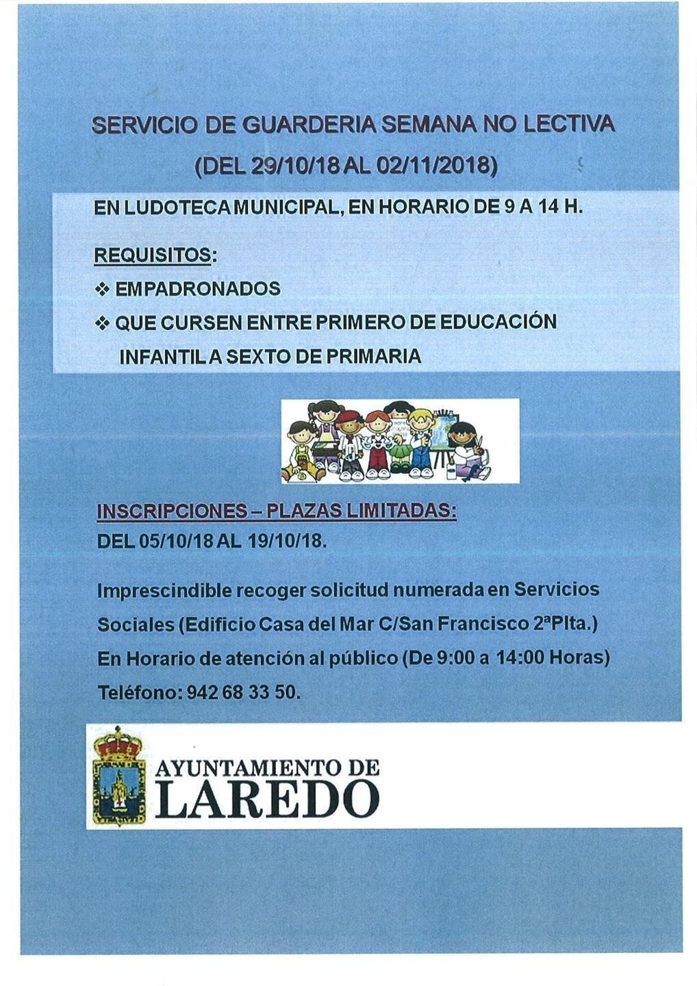 El Ayuntamiento de Laredo ha habilitado el Servicio de Guardería en la semana de descanso escolar, del 29 de octubre al 2 de noviembre, un servicio que se prestará en la ludoteca municipal de 9.00 a 14.00 horas.