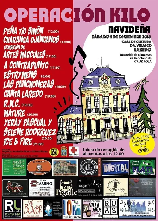La Asociación Músico-Cultural Bloque, con el patrocinio del Ayuntamiento de Laredo y la colaboración de numerosas empresas, celebrará este sábado en la Casa de Cultura Doctor Velasco la tradicional 'Operación Kilo Navideña'.