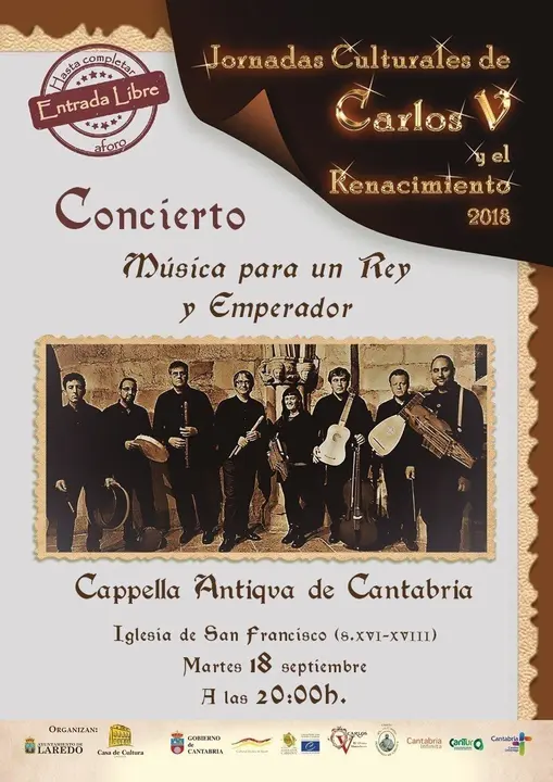 Este concierto, de entrada libre y bajo la dirección de Manuel Galán, se engloba dentro del ciclo Jornadas Culturales de Carlos V y el Renacimiento que el Ayuntamiento de Laredo ha programado como antesala de la recreación histórica y las fiestas de 'El Último Desembarco de Carlos V 2018'.