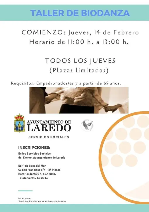 El Ayuntamiento de Laredo ha organizado un taller de biodanza para personas mayores que comenzará el próximo 14 de febrero y se impartirá todos los jueves, de 11.00 a 13.00 horas.