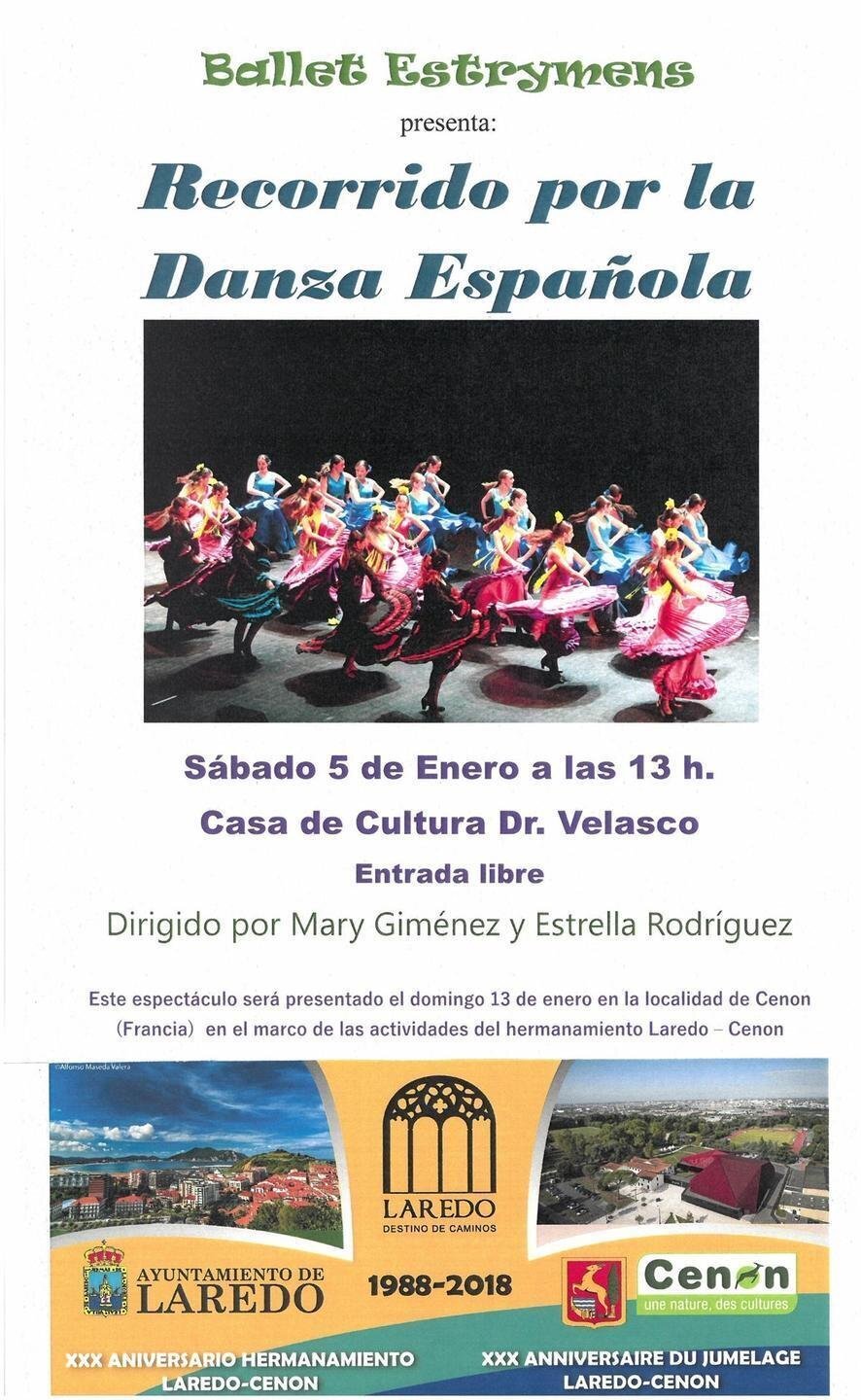 El Ballet Estrymens de Laredo, dirigido por Mary Giménez y Estrella Rodríguez, presentará este sábado, 5 de enero, el espectáculo 'Recorrido por la Danza Española', a las 13 horas en la Casa de Cultura 'Doctor Velasco'.