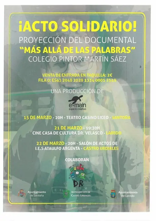 La Casa de Cultura Doctor Velasco de Laredo acogerá este jueves, 21 de marzo, a las 19.30 horas, una iniciativa solidaria con la proyección del documental 'Más allá de las palabras' referido al colegio de educación especial Pintor Martín Sáez de la villa.