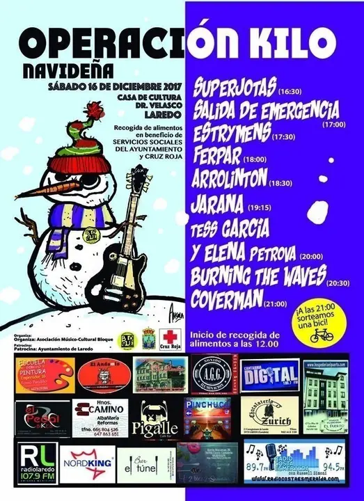 La Asociación Músico-Cultural Bloque, con el patrocinio del Ayuntamiento de Laredo, ha organizado para este sábado, 16 de diciembre, la 'Operación Kilo Navideña', que tendrá lugar en la Casa de Cultura Doctor Velasco.