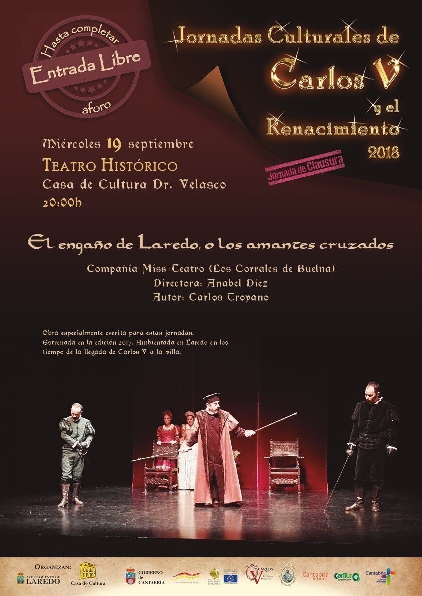 Las Jornadas Culturales de Carlos V y el Renacimiento se despiden este miércoles con el reestreno de la obra de teatro histórico 'El engaño de Laredo o los amantes cruzados', a cargo de la compañía Miss+Teatro' de Los Corrales de Buelna, dirigida por Anabel Alonso.