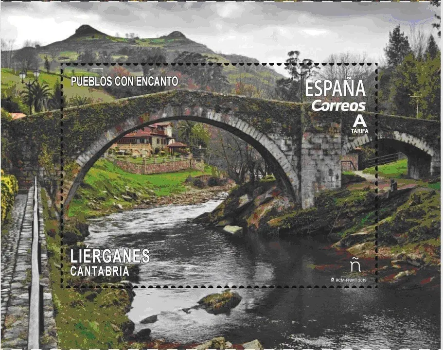 CORREOS ha emitido esta semana un sello dedicado a Liérganes, dentro de la serie anual Pueblos con Encanto. La localidad cántabra forma parte de una original emisión de cuatro sellos autoadhesivos que simulan las tiras de tarjetas postales antiguas, plegadas en formato fuelle.