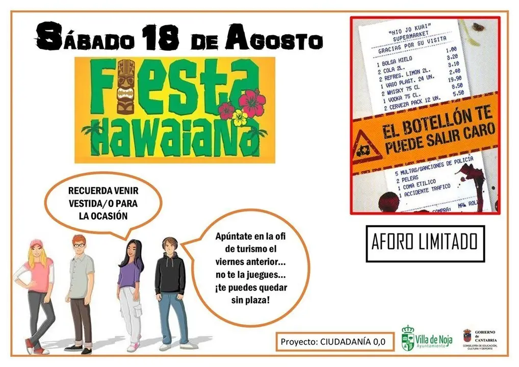 El evento de este sábado consiste en una fiesta hawaiana en la que todos los asistentes deberán ir muy floreados para entrar en el recinto, que estará abierto desde las 21.30 horas y hasta la medianoche. Durante este tiempo tendrán lugar un gran número de actividades y propuestas lúdicas.