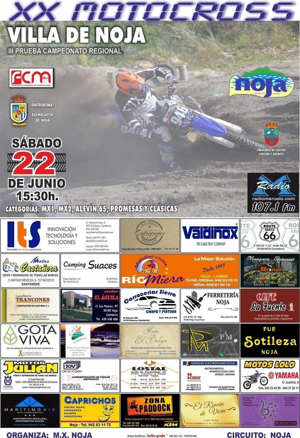 Noja acoge este próximo sábado, 22 de junio, la 20 edición del Motocross Villa de Noja, tercera prueba del campeonato regional que está organizada por el Motoclub MX Noja con la colaboración del Ayuntamiento de Noja, la consejería de Cultura y Deporte del Gobierno de Cantabria y la Federación Cántabra de Motociclismo.