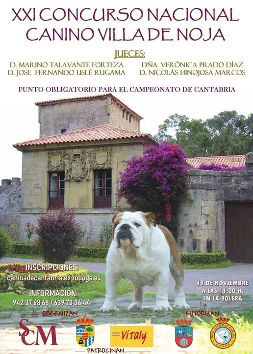 Más de un centenar de perros de toda España se darán cita el domingo 18 de noviembre en la bolera municipal de Noja con motivo del XXI Concurso Nacional Canino Villa de Noja, una prueba que cerrará el Campeonato de Cantabria de esta modalidad y que ha sido organizado por la Sociedad Canina Montañesa (SCM) con el patrocinio del Ayuntamiento y la colaboración del Gobierno de Cantabria, la Real Sociedad Canina de España y la Federación Cinológica Internacional.