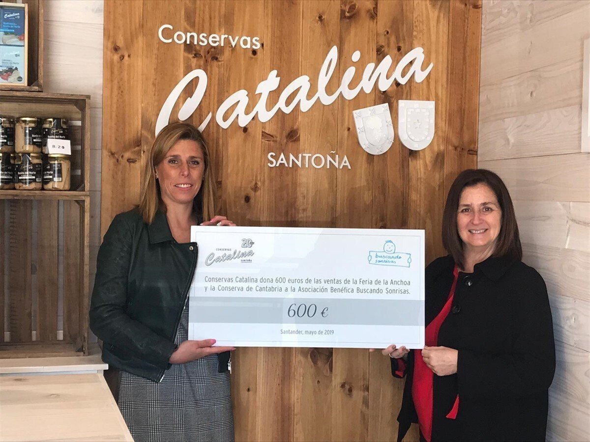 La conservera santoñesa Conservas Catalina ha entregado este martes a la asociación benéfica Buscando Sonrisas una donación de 600 euros obtenidos de sus ventas en la última edición de la Feria de la Anchoa y de la Conserva de Cantabria.