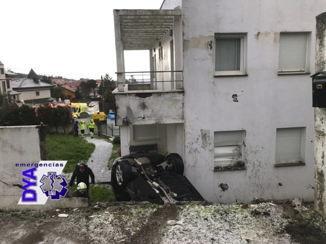 Un coche patina debido al granizo en la calzada y vuelca en el jardín de una casa de Castro