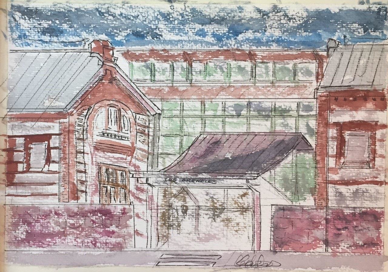 En este caso, se exhiben dibujos sobre el edificio de Tabacalera, sede del Archivo y la Biblioteca Central de Cantabria, realizados el pasado mes de marzo.