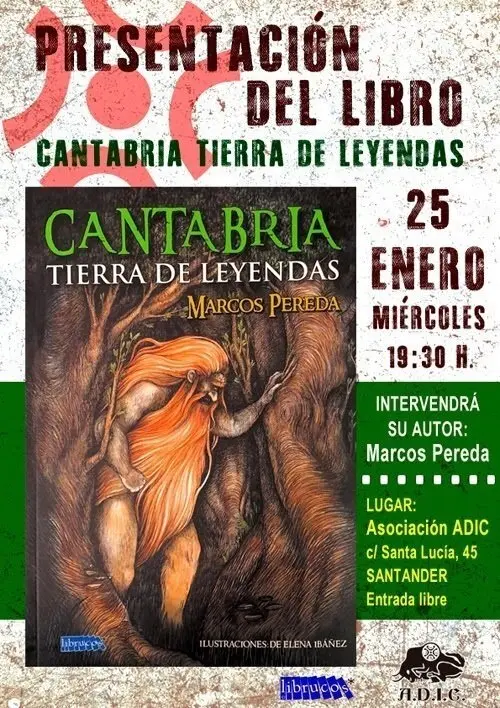 La sede de la Asociación para la Defensa de los Intereses de Cantabria (ADIC) en Santander acogerá este miércoles 25 la presentación del libro 'Cantabria tierra de leyendas', la nueva obra de Marcos Pereda. Será a las 19.30 horas con entrada libre.
