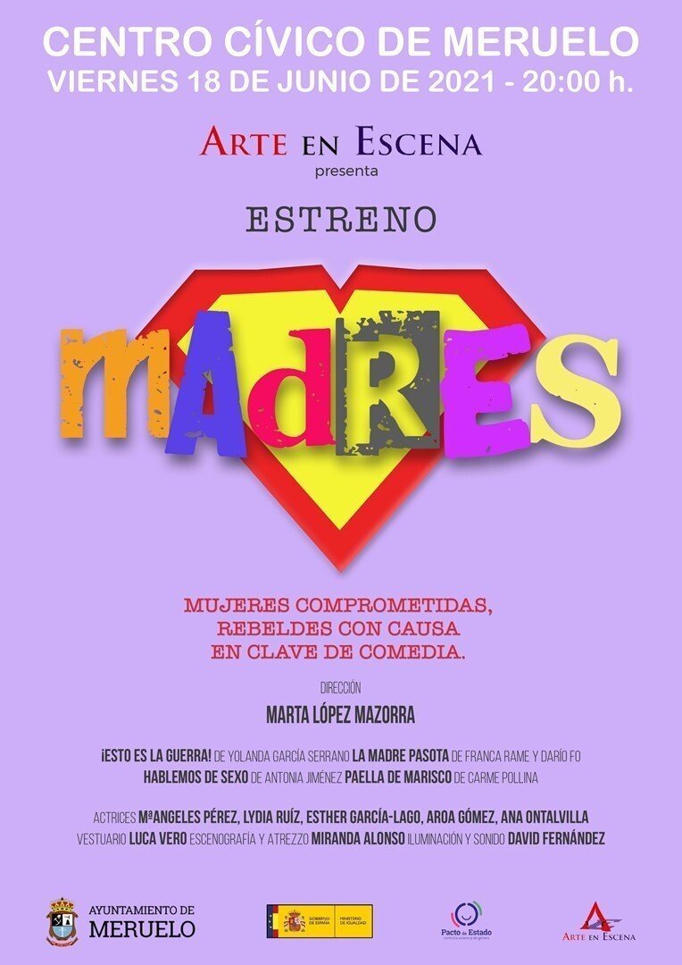 La compañía Arte En Escena estrenará este viernes 18 de junio en el centro cívico de Meruelo su montaje 'Madres', enmarcado dentro de las Jornadas culturales por la igualdad y en contra de la violencia organizadas por el Ayuntamiento.