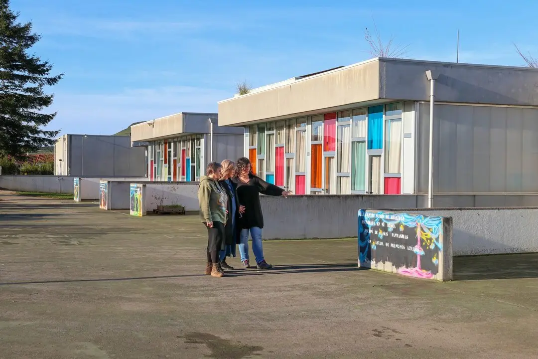 La alcaldesa de Polanco, Rosa Díaz, y la concejala de Cultura, Alicia Martínez, han inaugurado los nuevos murales junto a la artista, quien también es la autora del mural 'Las musas de Benito Pérez Galdós', de unos 40 metros cuadrados, que desde hace unos meses decora otro patio recreando la figura del escritor canario que da nombre al centro y su realidad imaginaria.