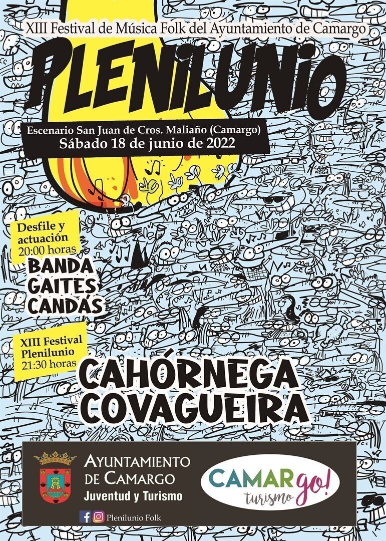 Camargo celebrará este sábado, 18 de junio, el XIII Festival Plenilunio Folk 2022, que ofrecerá en el escenario de Cros de Maliaño las actuaciones de Banda Gaites Candás, Cahornega y Covagueira.