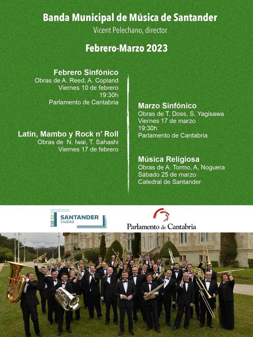 La Banda Municipal de Música (BMM) de Santander ofrecerá cuatro conciertos durante los meses de febrero y marzo, dos en el Parlamento de Cantabria, uno en la Catedral y otro en el Palacio de los Deportes.