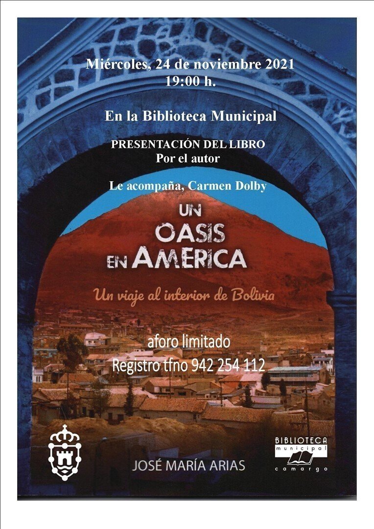 La Biblioteca Municipal de Camargo acogerá este miércoles, 24 de noviembre, la presentación del libro 'Un oasis en América. Un viaje al interior de Bolivia', de José María Arias.