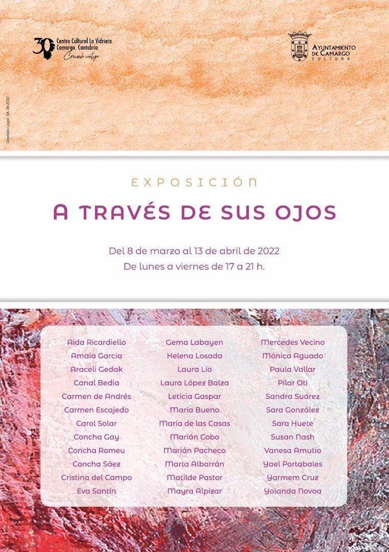 El Centro Cultural La Vidriera de Camargo acogerá el próximo 8 de marzo, a las 19.00 horas, el acto de inauguración de la exposición 'A través de sus ojos', que estará integrada por obras de 36 autoras que han participado en diferentes proyectos expositivos de este departamento municipal en los últimas tres décadas.