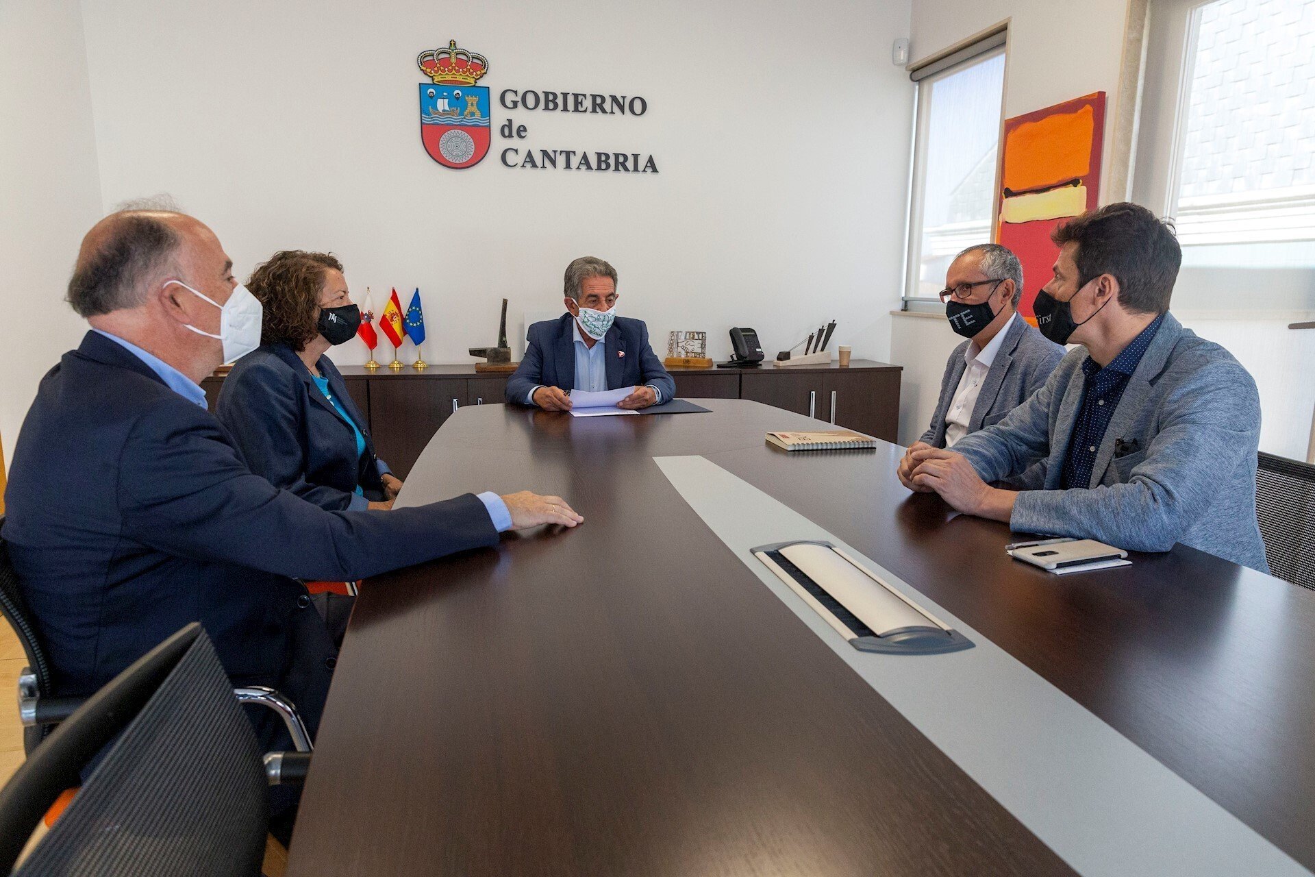 El presidente de Cantabria, Miguel Ángel Revilla, ha recibido este martes a parte del equipo responsable del proyecto 'Dos vacas y una burra', un largometraje para salas de cine y plataformas internacionales de televisión cuyo rodaje está previsto a finales de año en Cantabria.