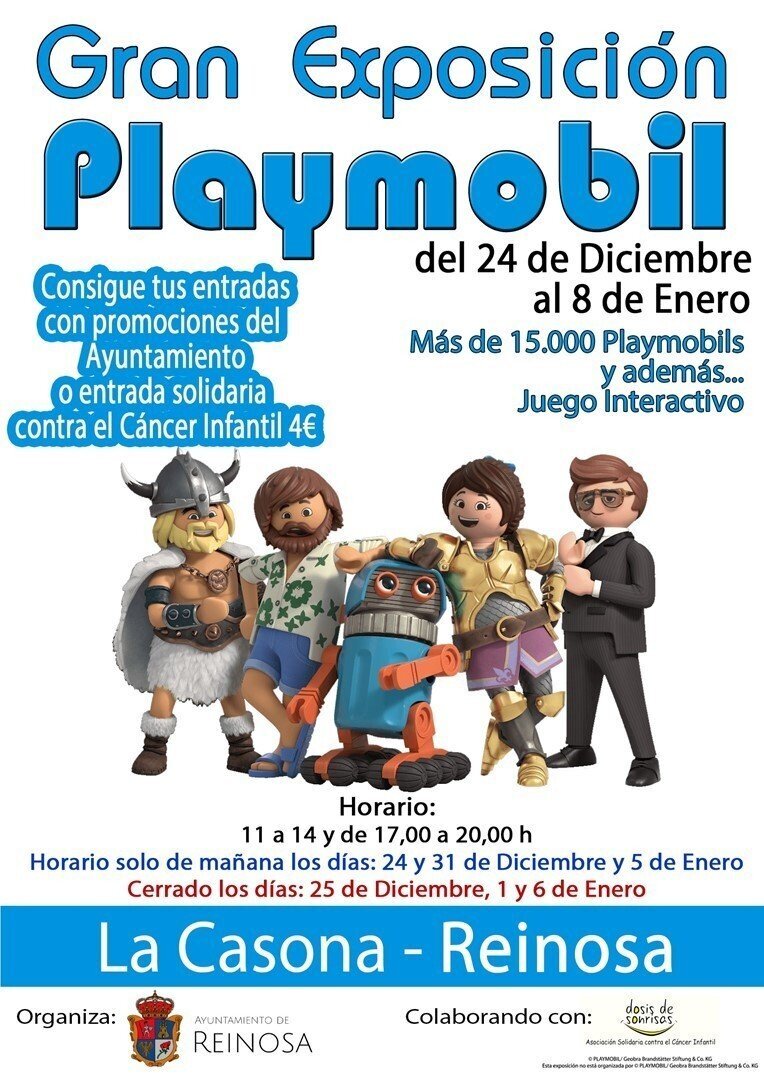 La Casona de Reinosa acoge estas navidades una exposición de más de 15.000 piezas de Playmobil, que abrirá sus puertas el 24 de diciembre. La muestra tiene carácter benéfico, para apoyar la lucha contra el cáncer infantil mediante la creación de programas de ocio en hospitales y donaciones económicas a la investigación sobre la enfermedad.