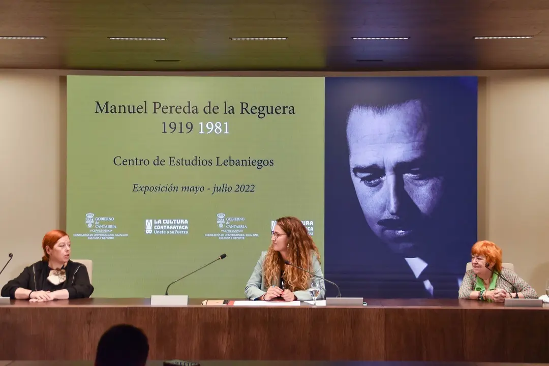 La directora general de Patrimonio Cultural y Memoria Histórica, Zoraida Hijosa, y las dos comisarias de la exposición e hijas del artista, Rosa Pereda y María José Pereda de Castro, han presentado este jueves esta muestra "ilusionante".