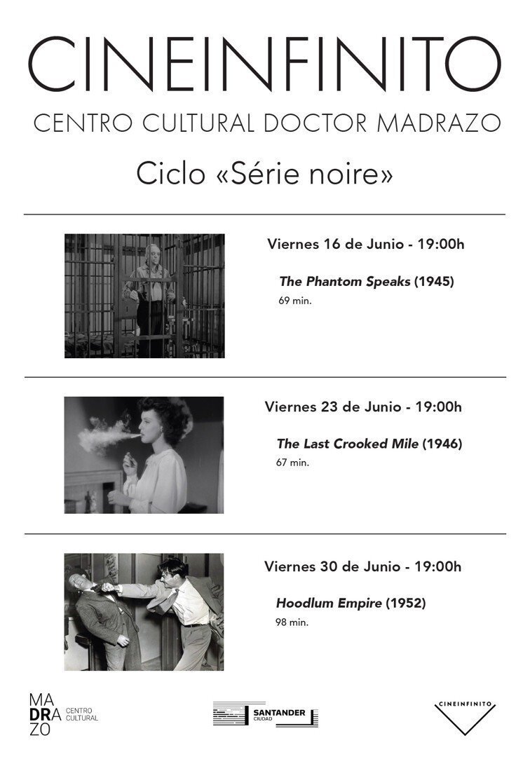 El ciclo de cine negro 'Série noire', que organiza 'Cineinfinito', vuelve al Centro Cultural Doctor Madrazo de Santander con tres nuevas citas los tres próximos viernes de este mes, en las que se proyectarán películas de la distribuidora Republic Pictures.