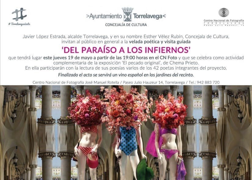 El Centro Nacional de Fotografía (CN Foto) de Torrelavega acogerá este jueves, 19 de mayo, la lectura poética 'Del paraíso a los infiernos', complementaria a la exposición 'El pecado original' de Chema Prieto que puede visitarse hasta el día 29 de este mes.