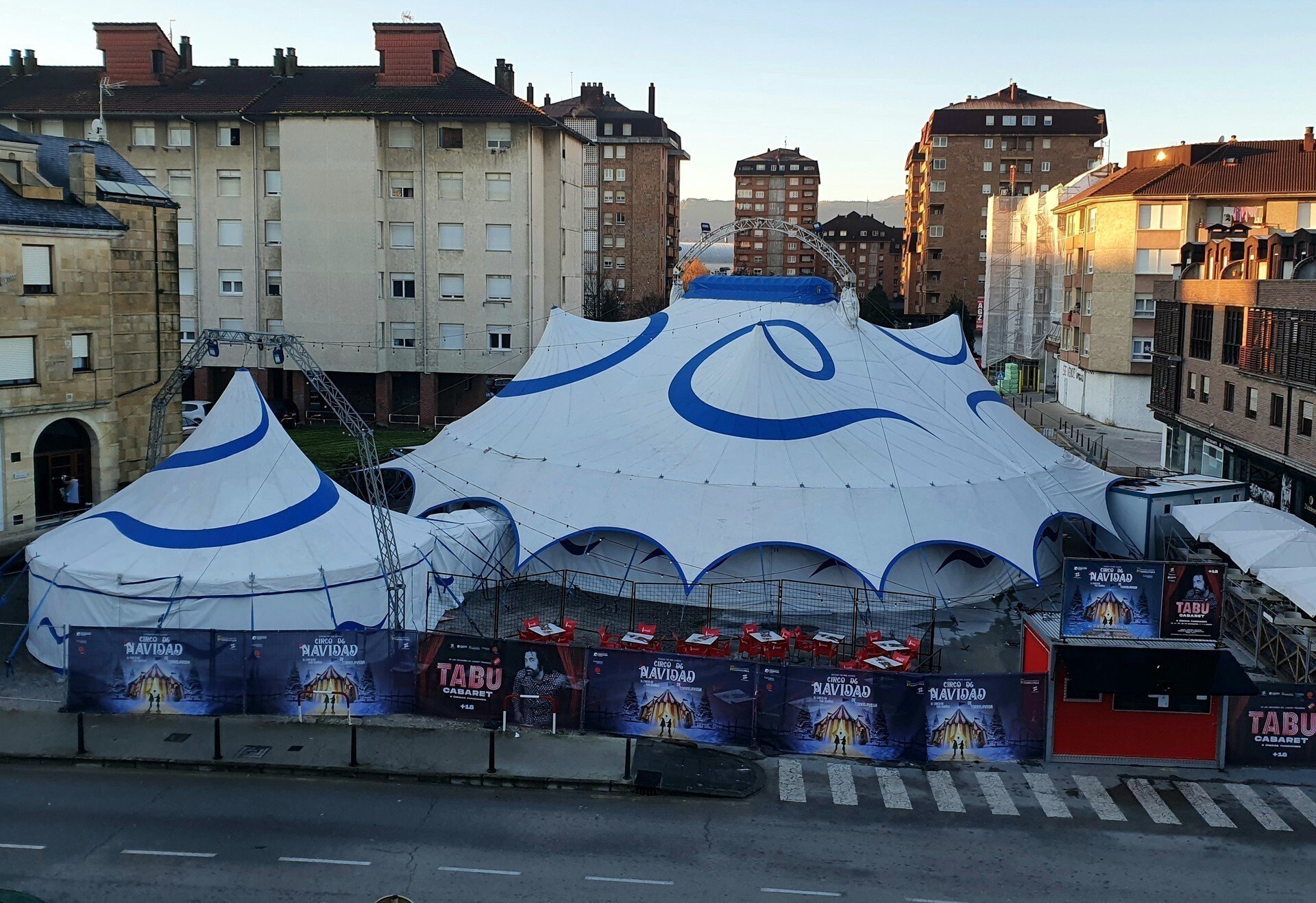 El Cabaret Tabú tendrá como escenario la gran carpa instalada en el aparcamiento junto al edificio municipal de la Plaza Baldomero Iglesias. Tendrá 300 localidades en sillas individuales y se adecuará a las condiciones de aforo sanitarias que rijan el momento.