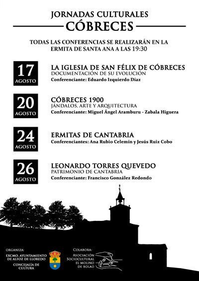 Las Jornadas Culturales de Cóbreces, organizadas por el Ayuntamiento de Alfoz de Lloredo en colaboración con la Asociación Sociocultural el Molino de Bolao, comenzarán este martes, 17 de agosto, e incluirán cuatro charlas sobre patrimonio e historia de Cantabria y, especialmente, de la localidad anfitriona.