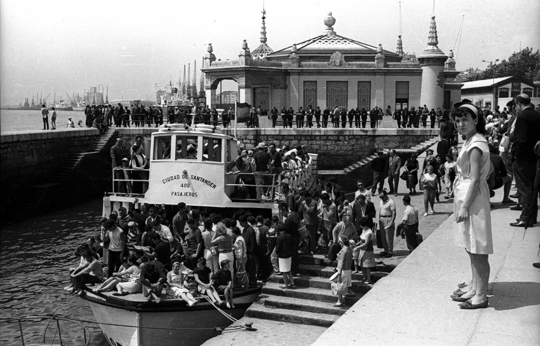 Colas formadas por aquellos que desean subir a 'la lancha' que lleva a las playas del otro lado de la bahía y que realizan el trayecto Santander-Pedreña-Somo. Con esta instantánea de 1.965.