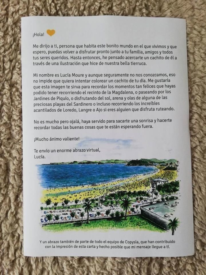 Hace dos semanas, Moure envió a los 187 pacientes ingresados entonces por el virus una carta adjunta con una ilustración del Sardinero que pintó a mano, según explica Moure en un nota de prensa.