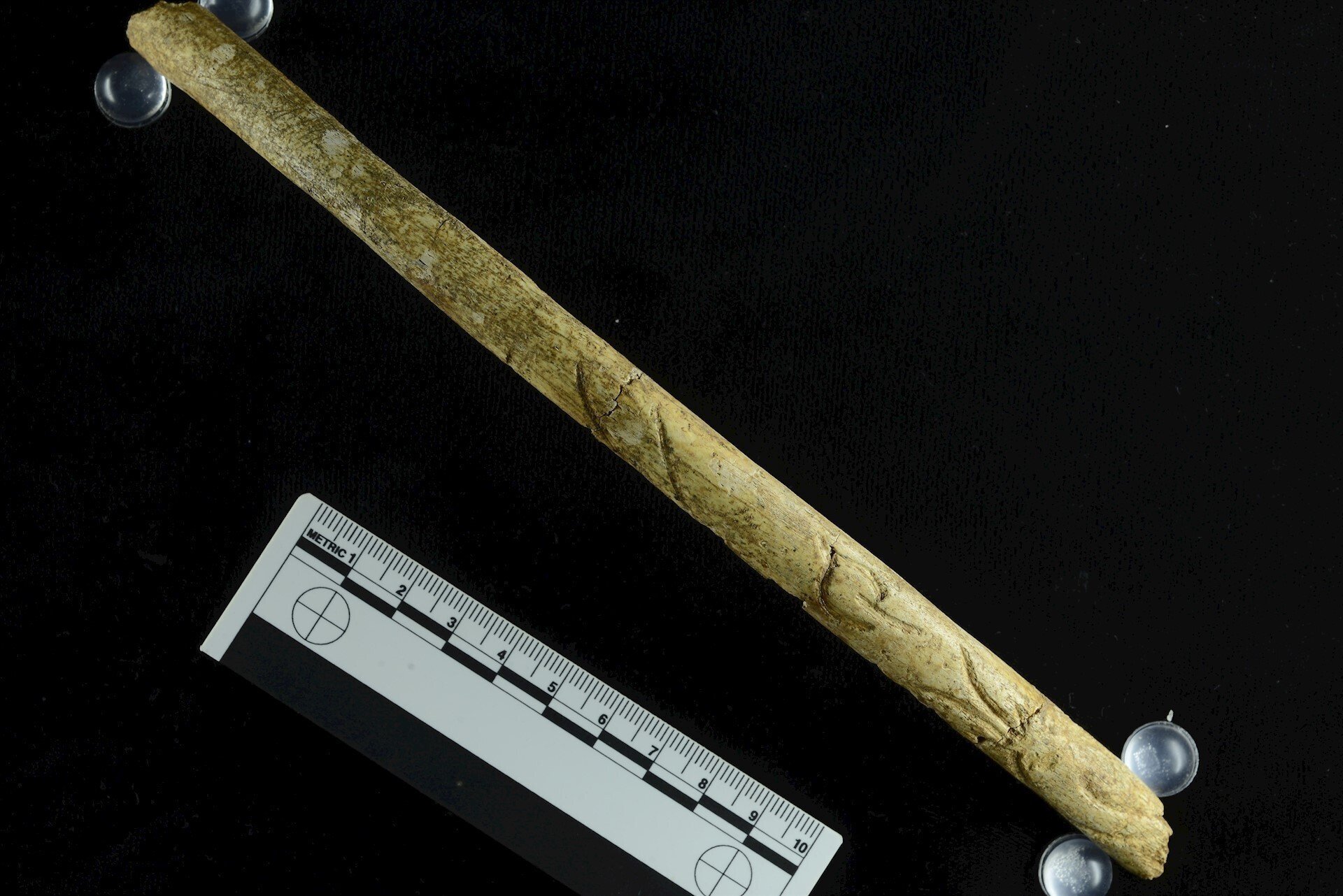 La costilla decorada de la cueva de 'El Mazo' (Revilla de Camargo) es pieza del mes del Museo de Prehistoria y Arqueología de Cantabria (MUPAC).
