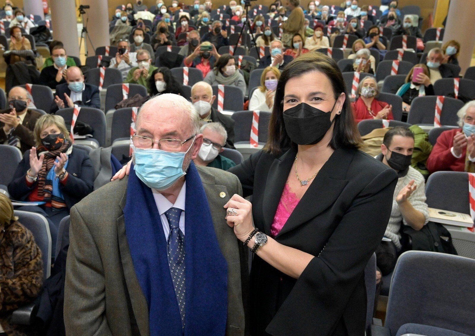 La encargada de imponer ayer al escritor la insignia con la Estela de Oro de las Letras de Cantabria fue la alcaldesa de Santander, Gema Igual, durante el acto celebrado en el Ateneo en el marco del XI Día de las Letras de Cantabria.