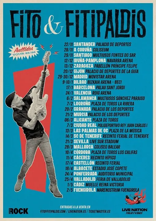 Más de dos años y medio después de sus últimos conciertos, Fito & Fitipaldis vuelven con esta gira, en la que repasarán los "grandes éxitos" de su carrera y presentarán su nuevo álbum 'El monte de los aullidos', en el caso de Santander, en el Palacio de los Deportes.