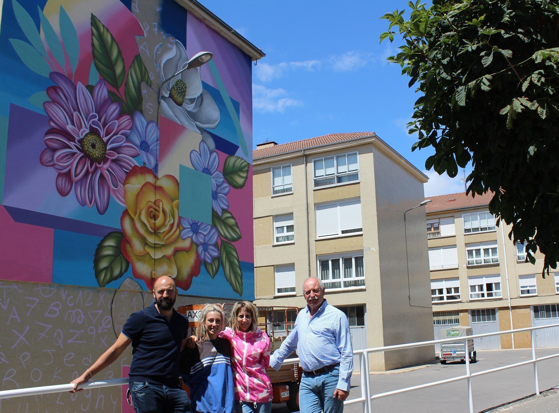 Irene López ha tomado el relevo del sevillano Bisho, que recientemente terminó otro mural de grandes dimensiones en la capital campurriana. A lo largo del verano otros creadores nacionales irán ampliando la colección de este proyecto cultural de arte urbano que es Galería Vertical y que ya cuenta con un catálogo de casi 40 obras distribuidas por diferentes construcciones de la ciudad.