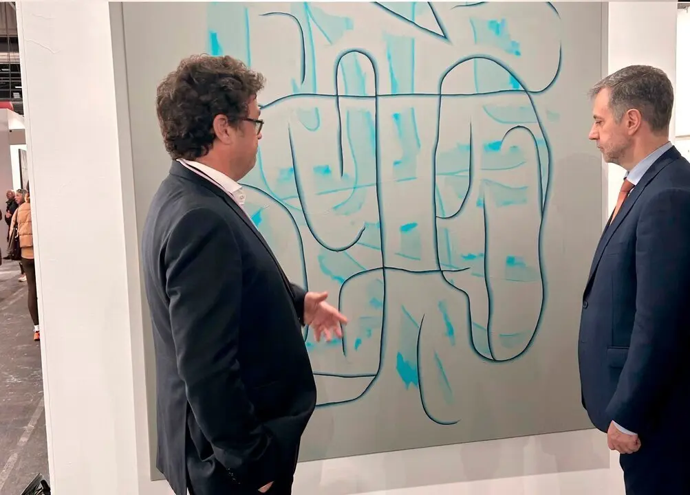 El consejero ha visitado el stand de la galería Juan Silió, que participa en esta edición con obra reciente de once artistas y un 'solo project' del cántabro Juan López. Los autores que presenta en esta ocasión comparten un posicionamiento que reconoce la capacidad de los materiales para desarrollar su propia narrativa.