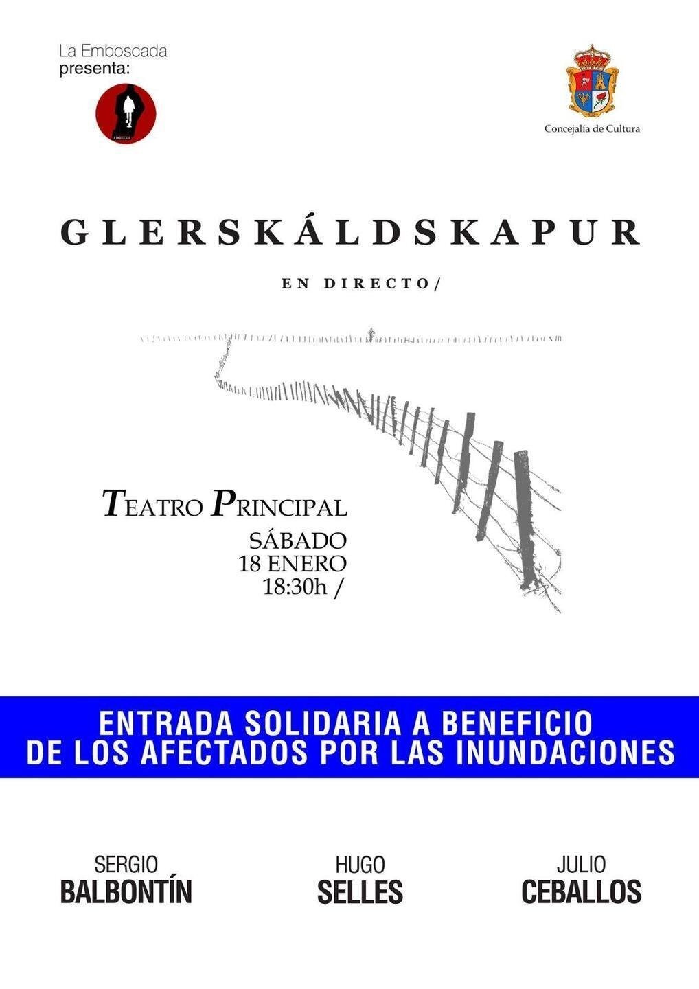 Los artistas Hugo Selles, Julio Ceballos y Sergio Balbontin presentarán su espectáculo Glerskáldskapur en el Teatro Principal de Reinosa este sábado, 18 de enero, a las 18.30 horas, para recaudar dinero en beneficio de los afectados por las inundaciones.