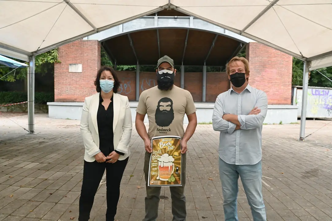 El alcalde de Reocín, Pablo Diestro, acompañado por la concejala de Festejos, Inmaculada Villaescusa, y David Cosío, de Redneck, ha presentado el evento, una de las primeras ferias de la cerveza que se celebran desde el inicio de la pandemia.