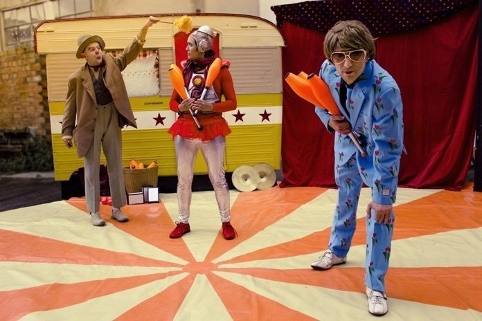 Y el 'Circo Ambulante' es un pasacalles que recorre la ciudad. Está compuesto por una insólita troupe de grotescos personajes que ponen en escena una dinámica y arriesgada propuesta que invita entrar en un mundo onírico del circo.