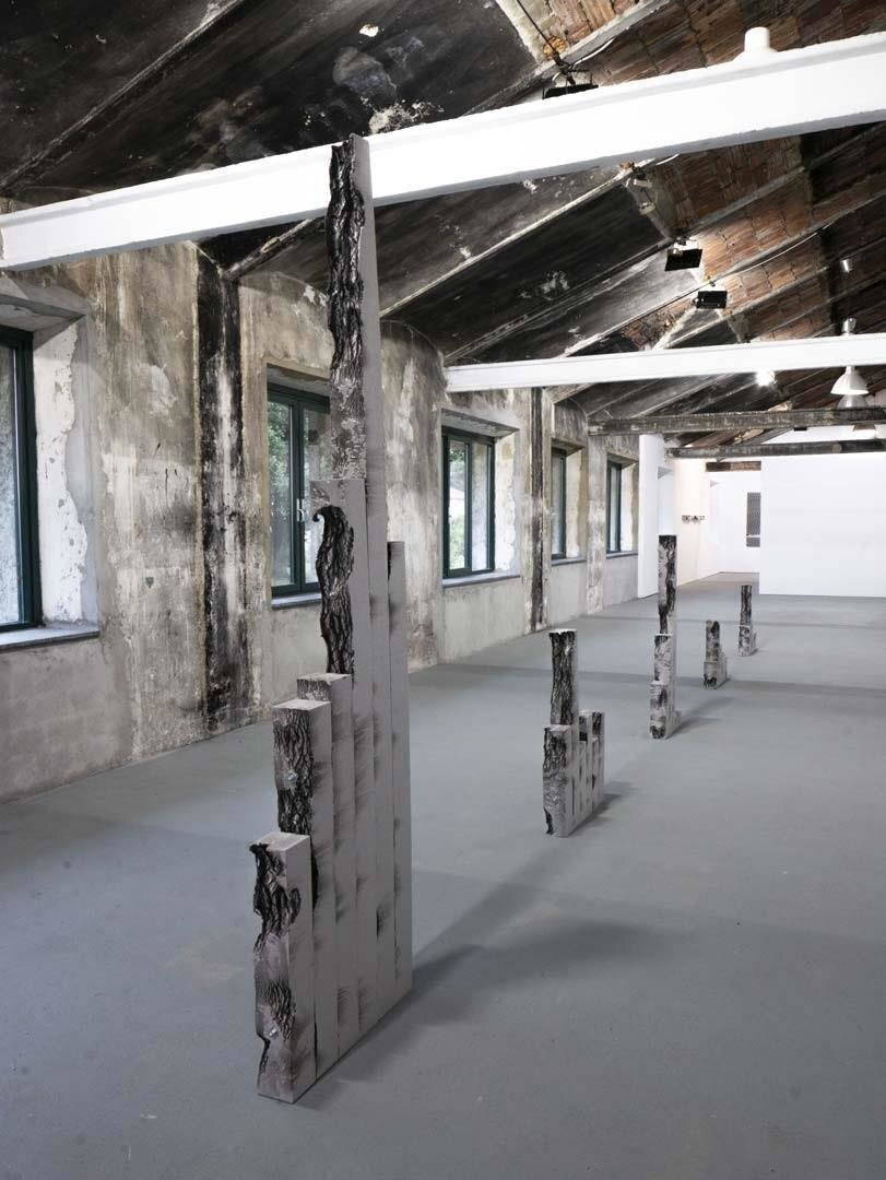 En estrecha relación con su trabajo más reciente, basado en una investigación acerca de los campos tradicionales e industriales de la pintura y la construcción, combinados con referencias de archivos médicos y biológicos, las piezas incorporan diversas gradaciones cromáticas y modulaciones gráficas que proyectan en el espacio el dibujo de ese paisaje social y humano configurado a partir de enormes cifras y datos.