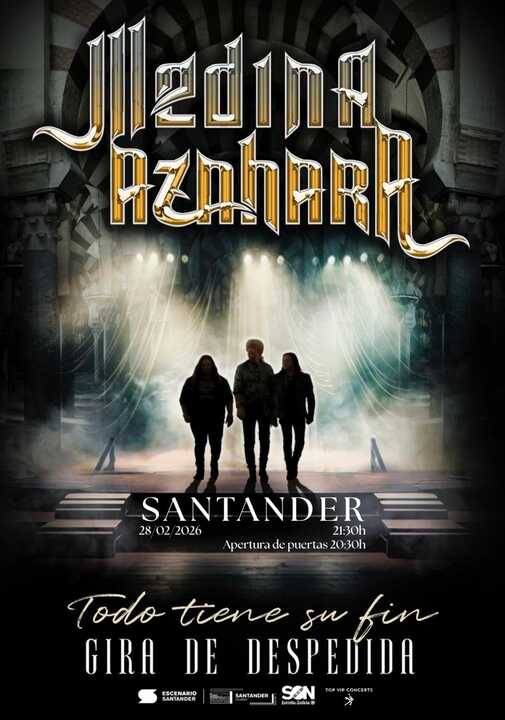 Medina Azahara recalará este sábado, 28 de febrero, en Escenario Santander, a las 21.30 horas, dentro de su gira de despedida de los escenarios, que comprende una serie de conciertos especiales para poner fin a la extensa carrera de la banda cordobesa.