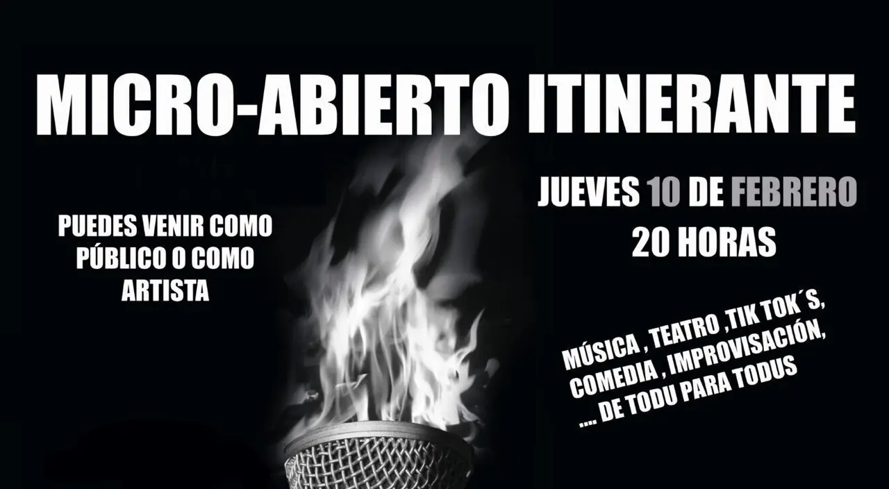 Quienes quieran participar pueden escribir al correo microabiertoitinerante@gmail.com o en las redes @microabiertoitinerante. A su vez, After Perdices y David Murillo se encargarán de ser maestros de ceremonia, abrir las actuaciones y sostener el escenario del 'micro abierto' en caso de poca participación, llenando los vacíos escénicos con improvisación, comedia, stand up, música y narración.