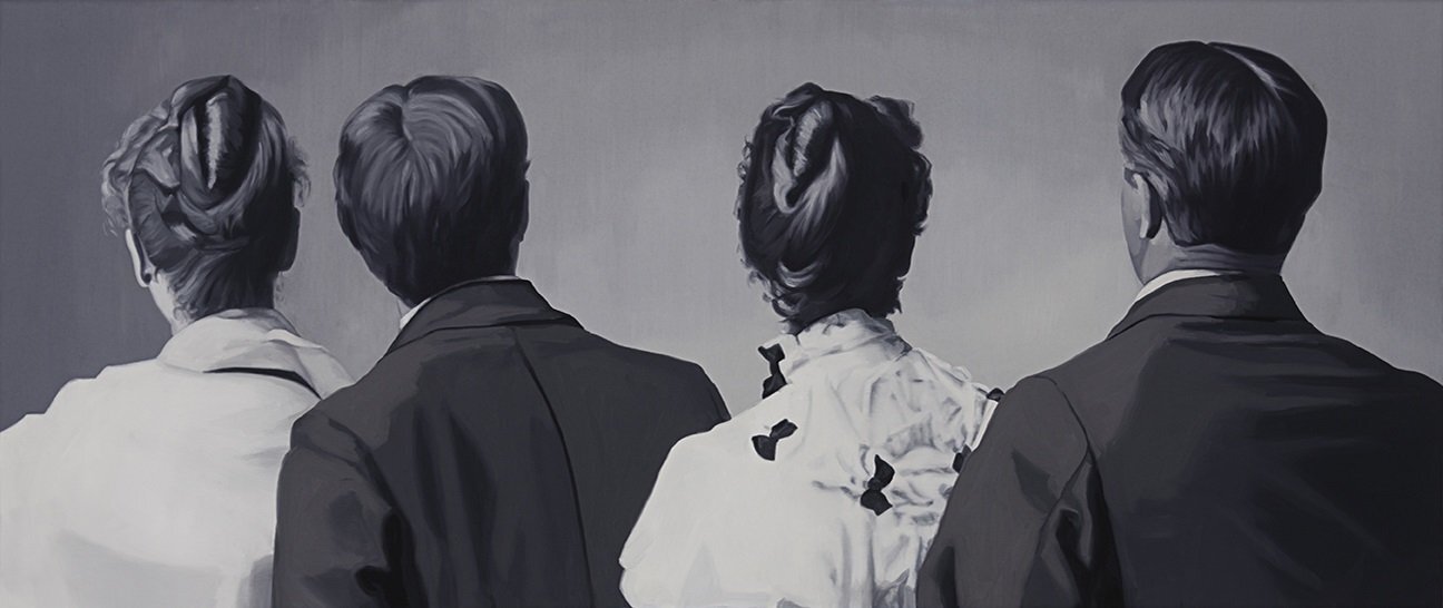 Las fotografías antiguas son plasmadas en óleo sobre lienzo utilizando siempre una gama de negros, blancos, grises o marrones con alguna nota puntual de otro color. La artista pone un énfasis particular en los peinados, los ornamentos y los pliegues, que dotan a las figuras de corporeidad mientras sus rostros se ocultan.
