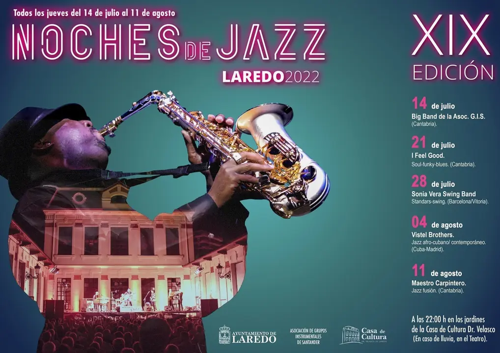 Cinco conciertos, que se celebrarán todos los jueves entre el 14 de julio y el 11 de agosto, integran la programación de las 'Noches de Jazz de Laredo', organizadas por el Ayuntamiento en la Casa de Cultura Doctor Velasco con la colaboración de la Asociación Grupos Instrumentales de Santander, y que por primera vez tendrán un precio simbólico.