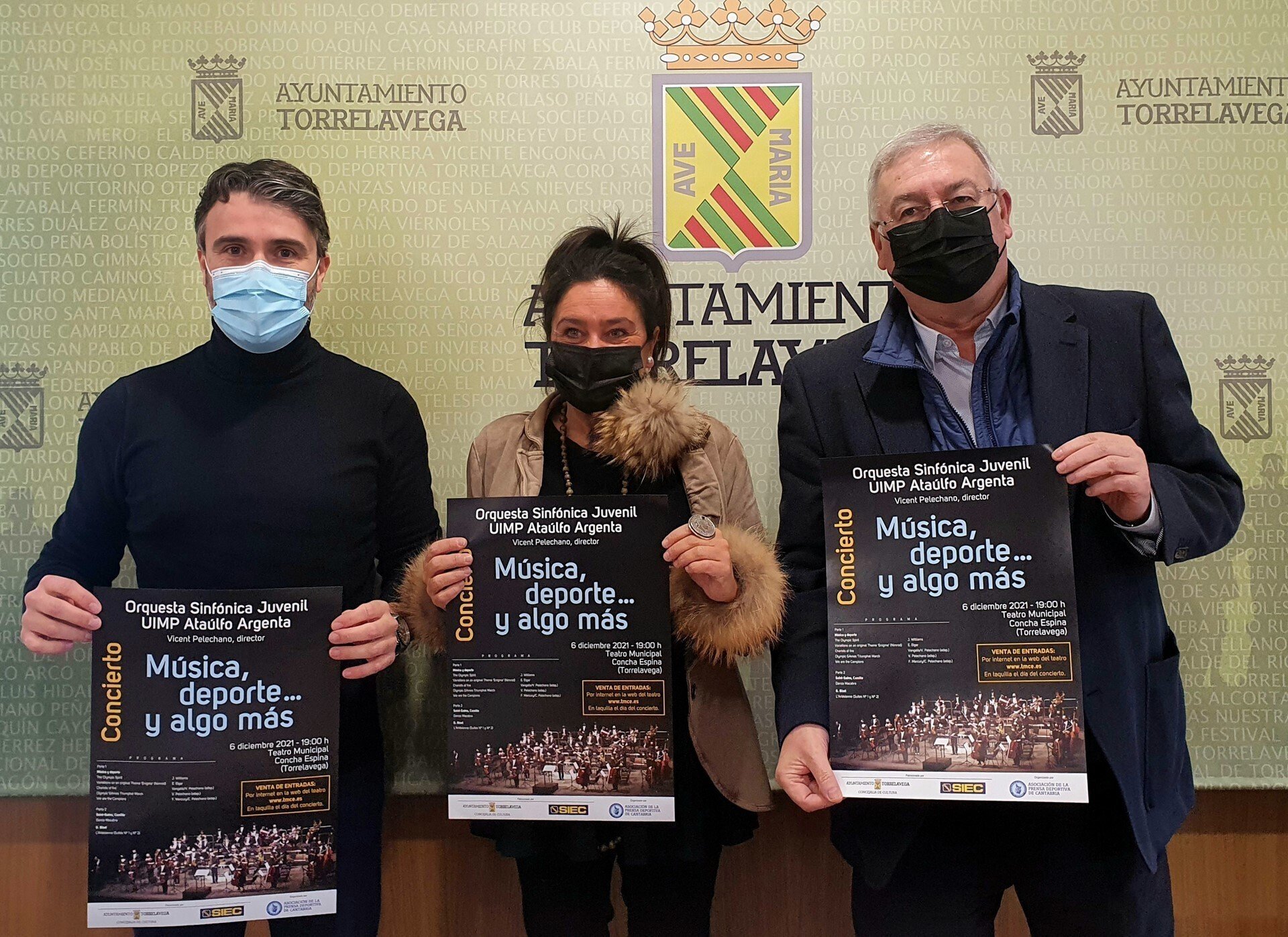 La concejala de Cultura de Torrelavega, Esther Vélez, ha presentado este viernes en rueda de prensa el concierto, junto al director de la orquesta, Vicent Pelechano; y el presidente de la Asociación de la Prensa Deportiva de Cantabria, Juan Antonio Prieto.