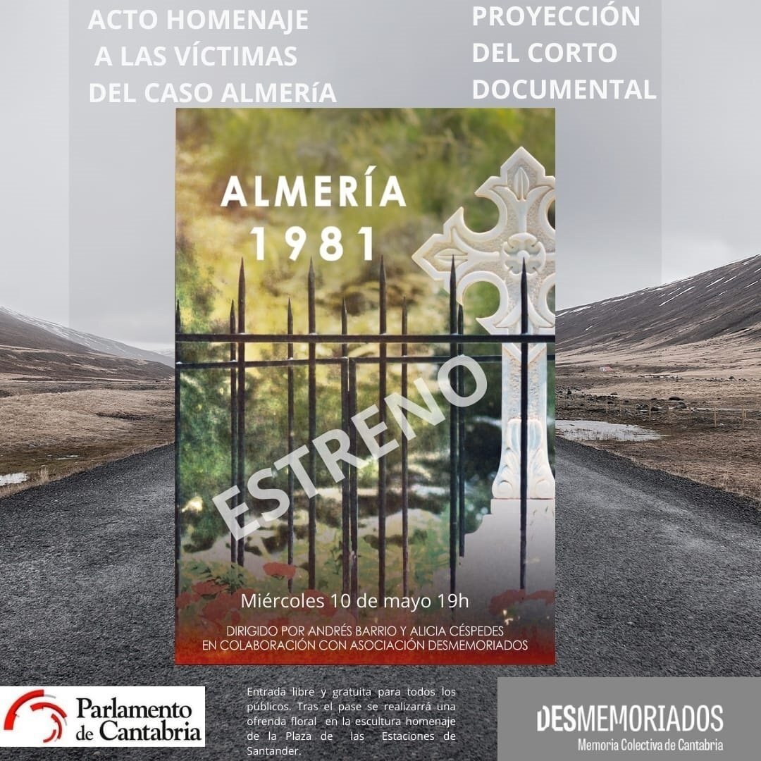 El Parlamento de Cantabria acogerá este miércoles, día 10, el estreno de un corto documental sobre el 'Caso Almería' con motivo del 42º aniversario del crimen, en el que tres jóvenes residentes en Santander fueron torturados y asesinados por miembros de la Guardia Civil tras confundirlos con militantes de ETA.