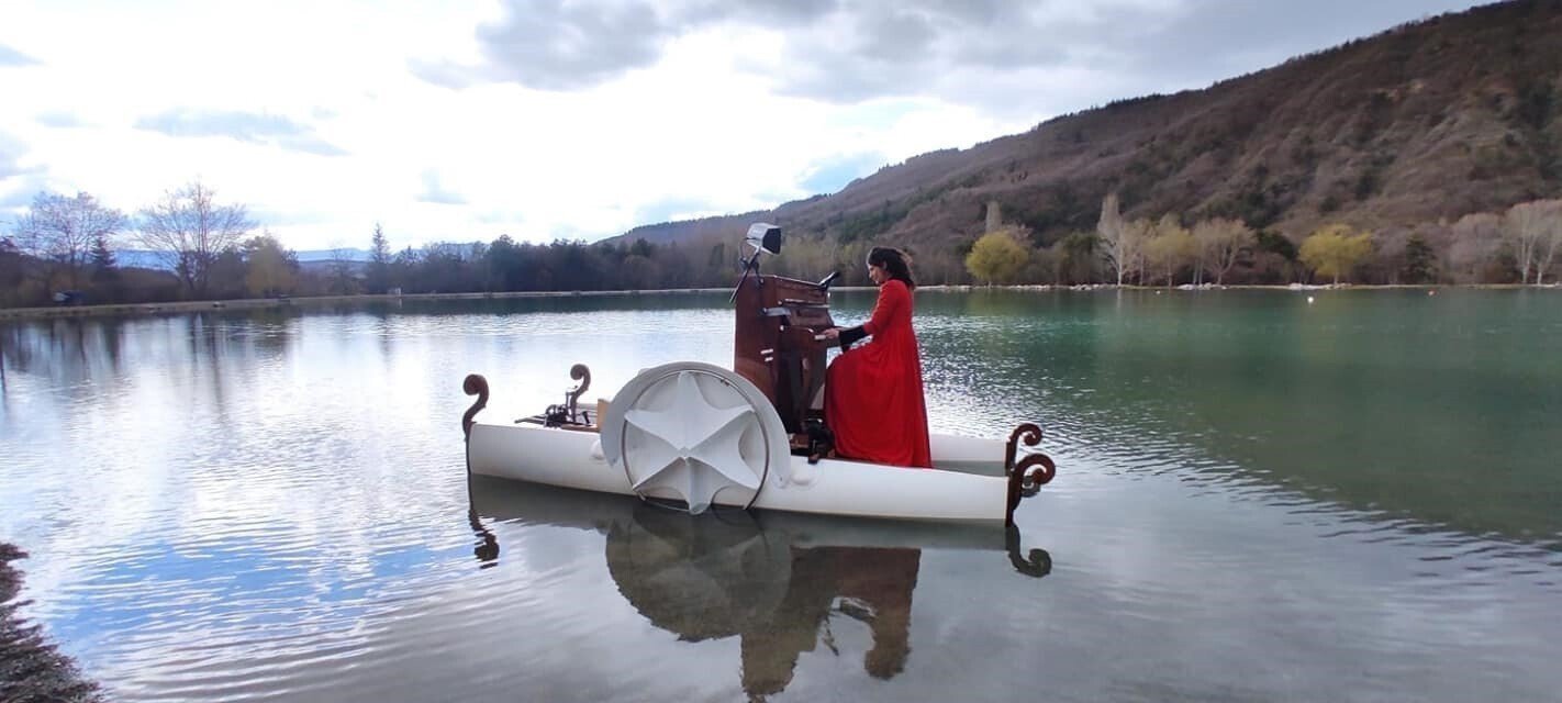 Se trata de un piano flotante que descansa sobre dos flotadores catamaranes, ciclopropulsados gracias a dos ruedas-paletas e inspirado en los diseños dibujados por Leonardo Da Vinci, que va acompañado por los artistas Violette Prevost y Juanjo Ochoa.